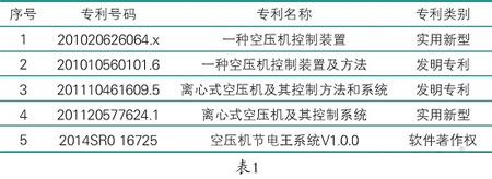 时代科仪离心空压机节电王专门针对离心压缩机,具有多项国家专利和软件著作权,列出如表1。