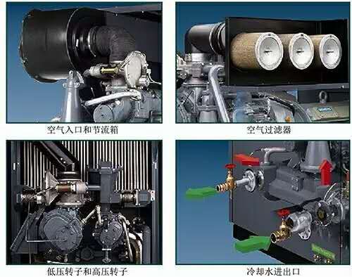 涂层有两种,一种是性能一般的特氟隆,还有一种是要好很多的二硫化钼,无论是上述的哪一种,都有使用寿命的,同时对水份的要求较高。所以这类无油螺杆机不用时需要经常去转动机器,避免主机长期不动而卡机。经常发生主机卡死的故障都是因为此类原因引起。②主机排气温度非常高 一般无油螺杆机的主机排气温度能达到180+,一般工厂会在出厂前做了一些防护措施,但是在操作时还是要特别注意高温部件,以免引起烫伤甚至火险。