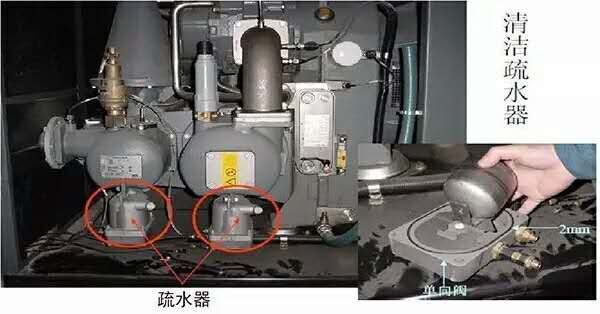 3、中冷器、后冷器冷凝水排水阀的清洗或保养工作,中冷排水单向阀功能完好,关闭中冷、后冷手动排水阀。
