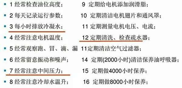 ● 停机前先打开中冷、后冷手动排水阀。彻底排放冷凝水(冷却器、转子水套等);