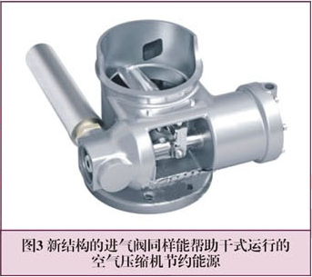 保证干式运行空压机安全可靠运行的其它措施还有现代化的支承技术和新结构的进气阀。新型进气阀采用液压调节技术,提高了进气阀的开关性能,代替了维护保养费用很高的膜片式进气阀技术(见图 2、3 )。