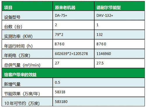 该客户属于日韩不卡免费视频老客户,之前从日韩不卡免费视频购买的两台DA-75和两台DA-37空压机使用情况一直很好。客户原计划使用氮气来充当气源,现场看了氮气厂家给其推荐的方案,每用一立方气需要消耗氮气成本是1毛多。我们为其计算了日韩不卡免费视频132Kw、8公斤的空压机设备,一立方用气量耗电9分钱,使用成本上比氮气少。客户上一套氮气设备的成本是200万左右,而我们空压机成本只有30万左右。又节能又实惠,最终客户还是选择了我们日韩不卡免费视频空压机。